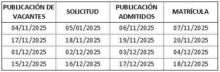 MATRÍCULA: PREFERENTEMENTE en el centro (solo para quien ha sido admitido).